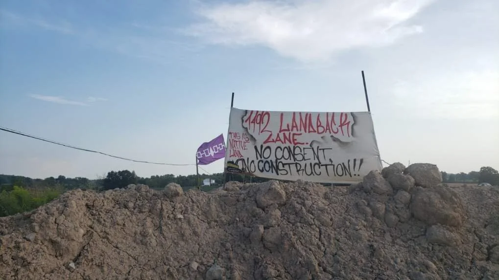“We know whose land this is,” Skyler Williams of Six Nations told officers from the Hamilton sheriff’s office who came to Caledonia on July 31 to serve a Superior Court injunction ordering land defenders off a construction site on McKenzie Road.
